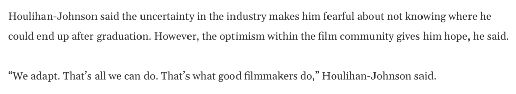 I was interviewed by The Lantern at OSU, during my undergrad, about going to the movies and its future during COVID. (And yes, I do love Tenet THAT much.)